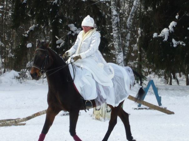 потом был классный номер, Там девочка Лера выезжала на пони под музыку про золушку, мы пони Шарлоту одели во все самое старое и дырявое, заплели ей в гриву и хвост сено, на Лерке был старый ватник, она проезжала под музыку через плац и узжала в лес, а выезжала уже на белой красивой лошади в бальном платье))) вот такой был номер!!! Фоток правда этих нет((