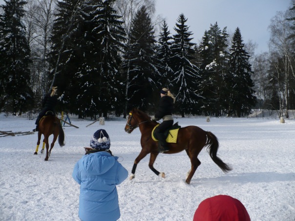 в итоге мы продули, во-первых у другой команды лошадь была гораздо резвее, а во-вторых в той команде была Ира и она (ИРА!!! ЭТО БЫЛ ЗАПРЕЩЕННЫЙ ПРИЕМ!!!! :roll: )галопом скакала!!! естественно мы проиграли, т.к. наша Миланка в галоп на плацу ваще не поднимается