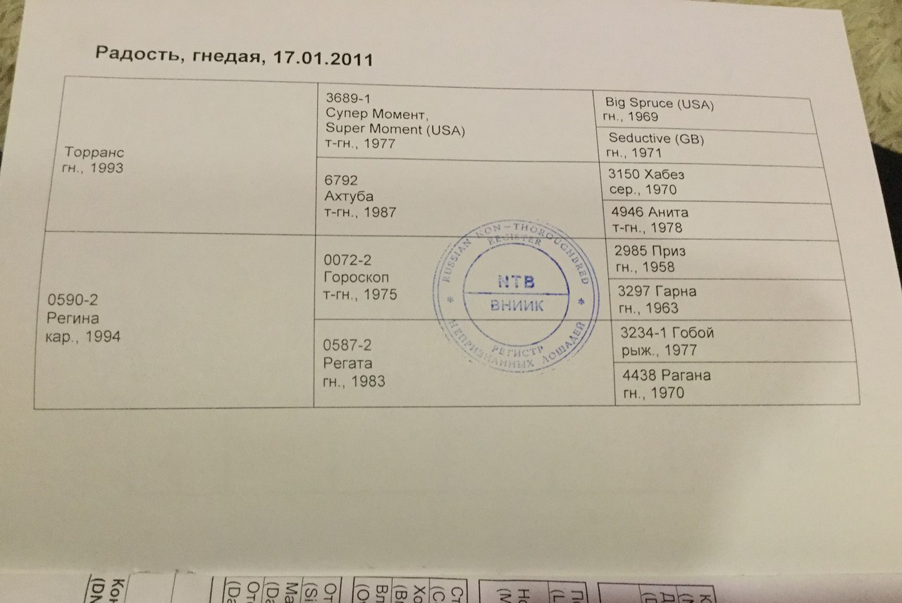 По отцу внучка знаменитого Супер Момента, жеребца американского происхождения, установившего несколько рекордов резвости.