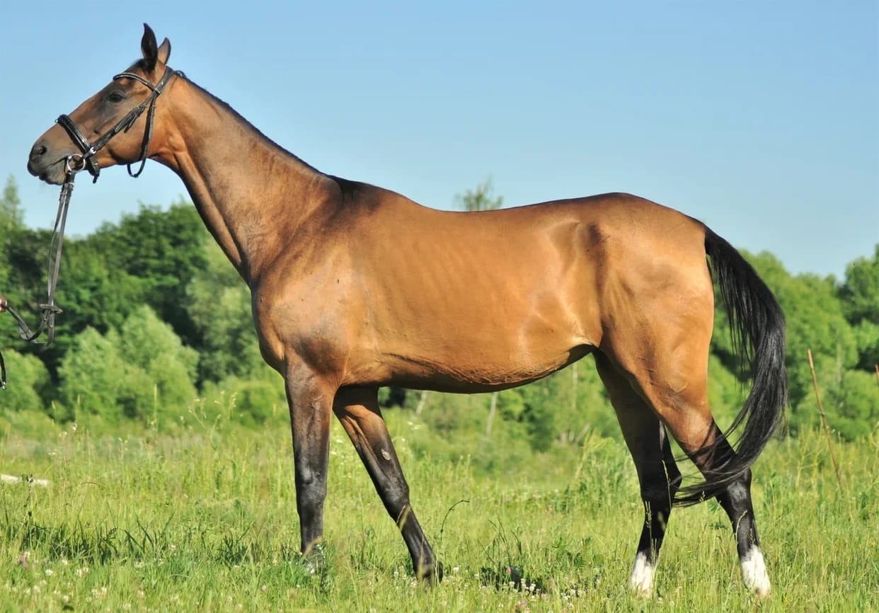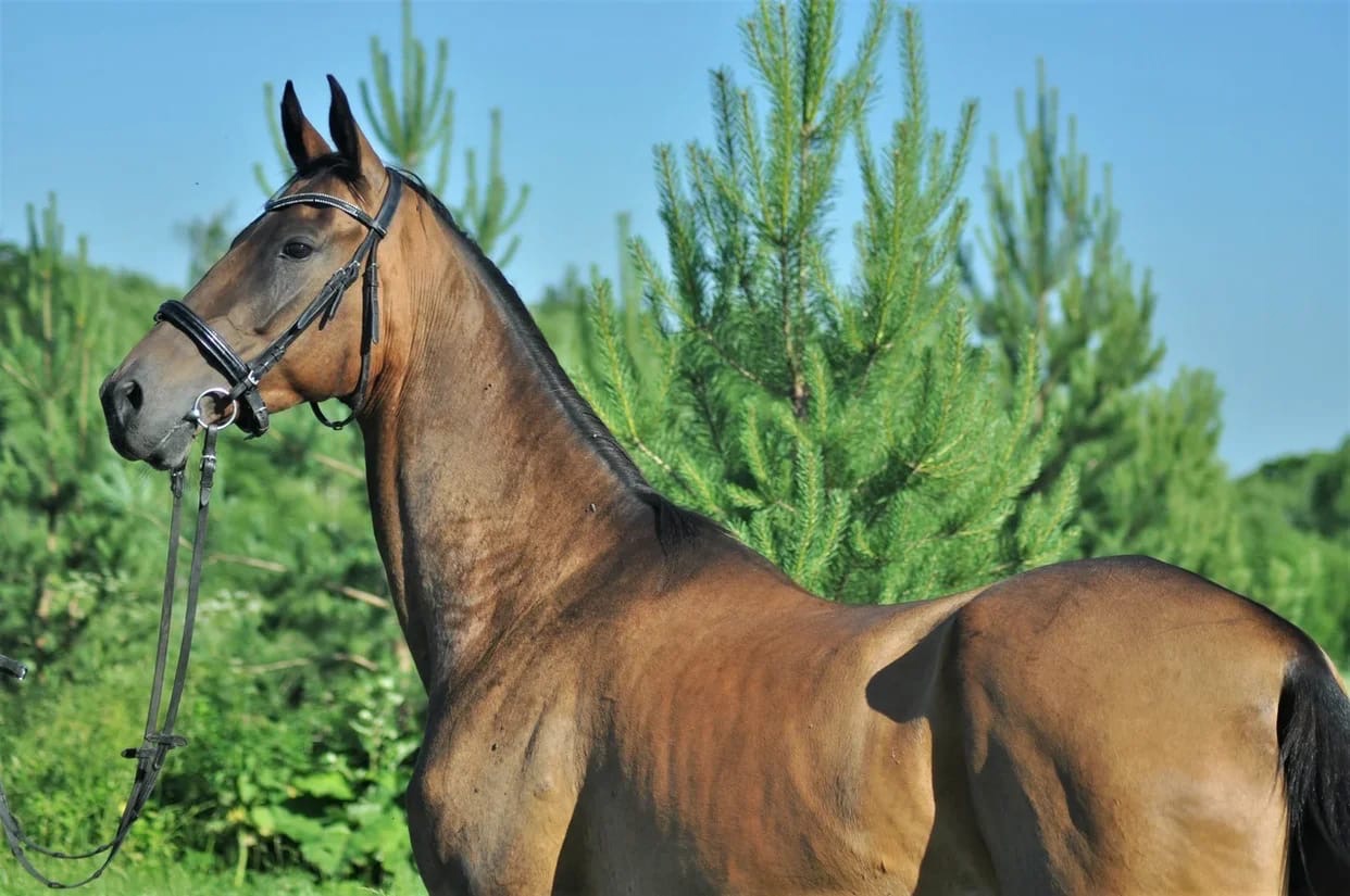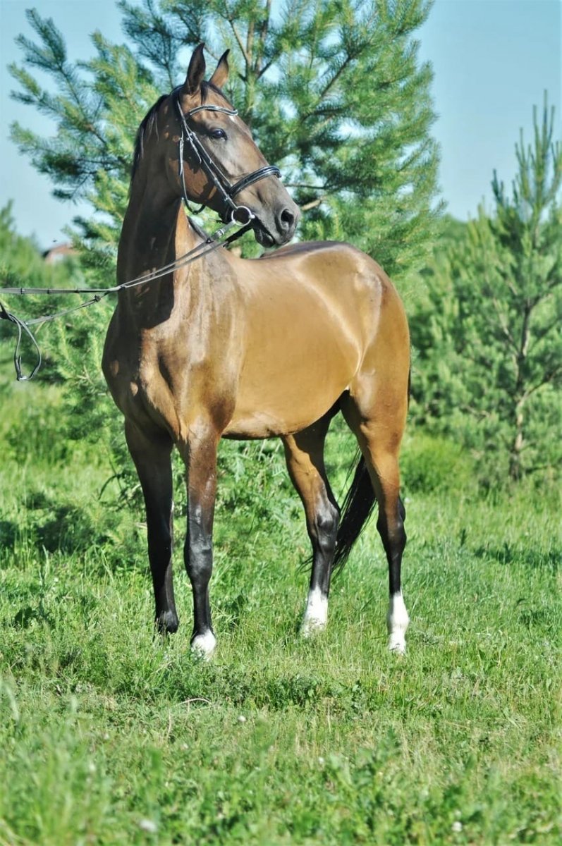 Здорова, выращена на пастбище, травм не было, работается под верхом без специализации (три базовых аллюра + выезды в поля). Не крылась, гуляет-пасётся.