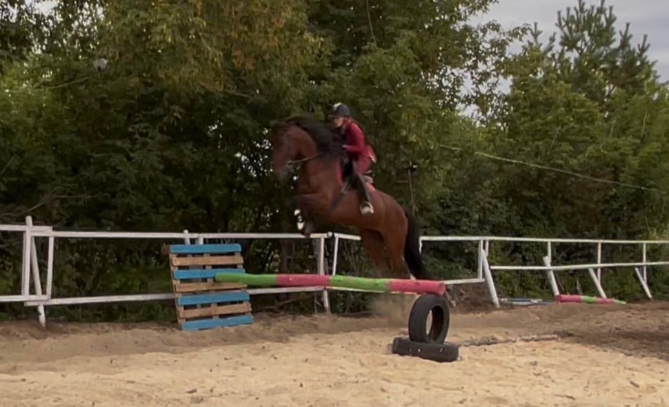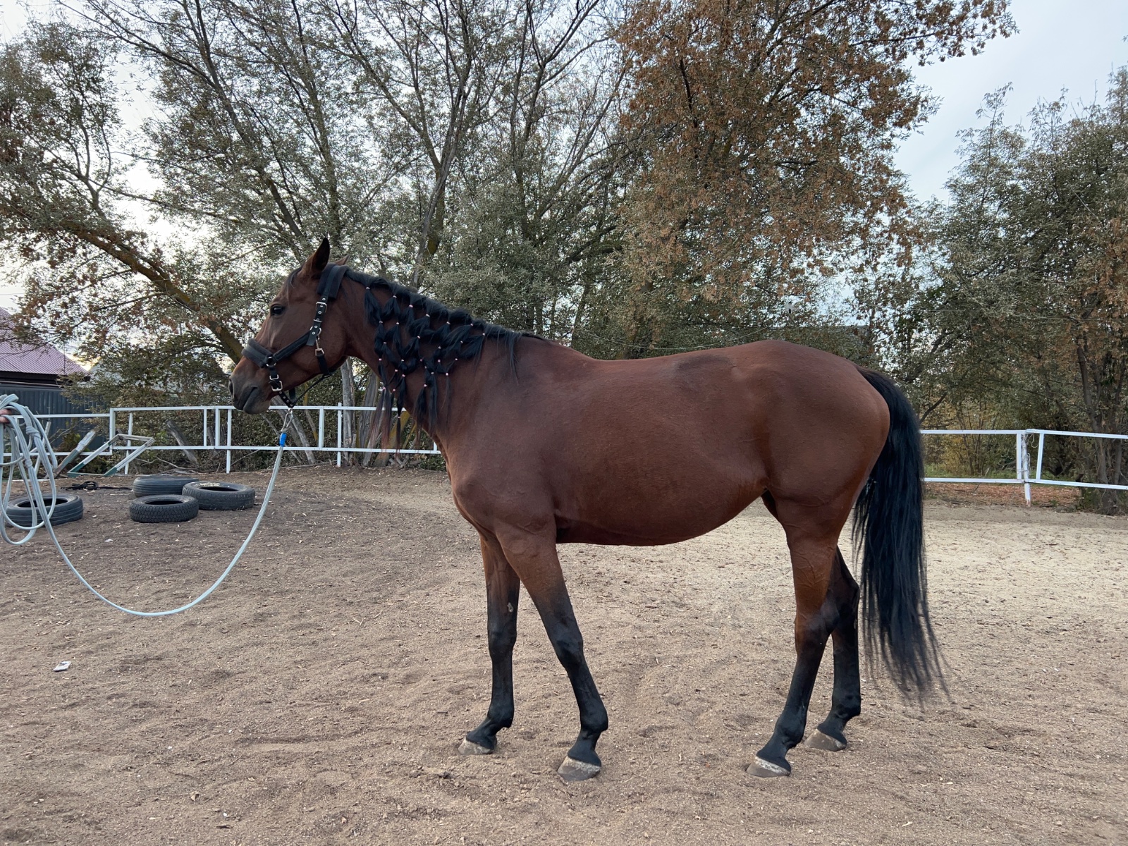 Поздней заездки ,абсолютно здорова ,человекоориентирована ,все манипуляции без проблем ,обладает сильнейшим прыжком и хорошими движениями ,маршруты до 100,шпринт 120,может выше(не форсируем),жеребилась.