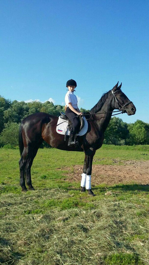 Очень ласковая и старательная девочка.Под любителя или сильного ребенка..Бежала любительские езды, и езды по молодым лошадям.Знает элементы(плечо внутрь,траверс ,ранверс,уступка шенкелю).Бегает безотказно в смене под детьми .Все вет. процедуры переносит спокойно,расчищается.
