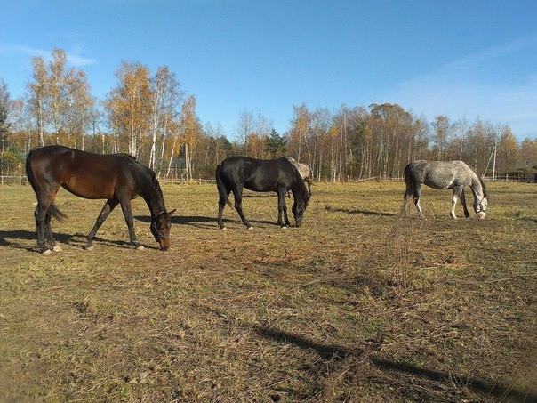 - Каждодневный выгул (в зависимости от погоды, в перспективе весь день), для стабуненных лошадей большая левада в 1 Га. Есть возможность поставить свой электропастух.