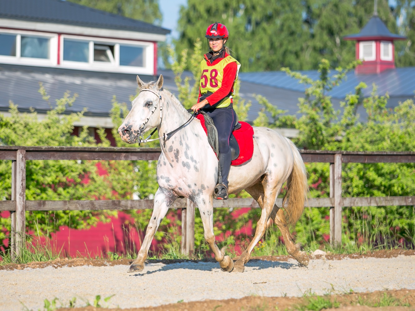 Спокойно управляется 6летним ребёнком-шаг, рысь, галоп, прыжки.