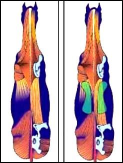 Еще там интересная методика найти верхнюю линию для ширины канала седла - обычно предлагают щупать сами кости, а она - снизу от ребер провести пальцами вверх по мясу длиннейшей, и где пальцы уйдут вниз, там должна кончаться нагрузка весом. Я еще не счупала коней, но есть подозрение, что если определять так, то выйдет даже более широкий канал, чем если щупать сверху вниз...