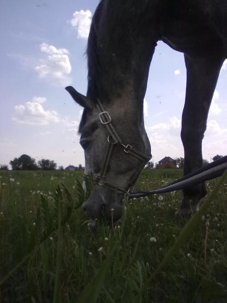 Общупывание мышц пяти лошадей подряд дает некое представление о том, как они должны выглядеть. Куда полезнее, чем смотреть вечно на одну и ту же лошадь. Связки тоже любопытно щупать. Наконец я начала отличать на ощупь рыхлую связку от "воды" в тканях вокруг. И нормально смотреть глаза. Еще прикольно перильстатику слушать))) Как оно там. Бурчит.