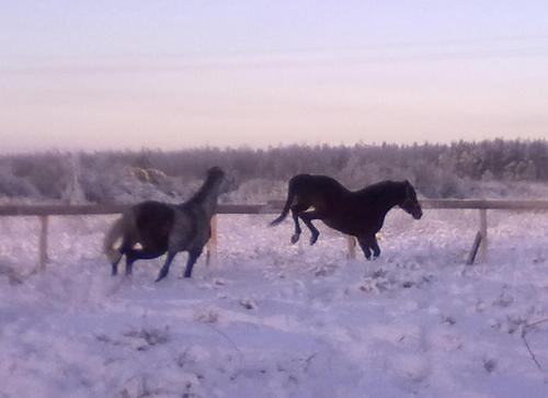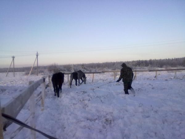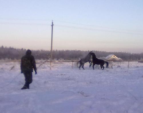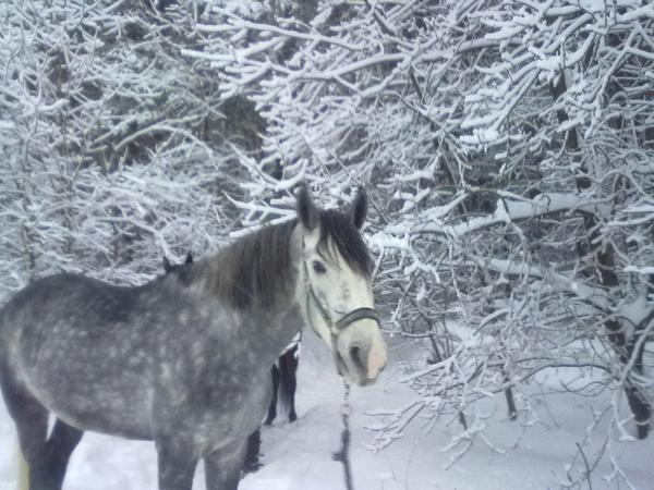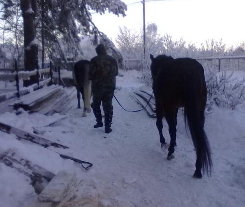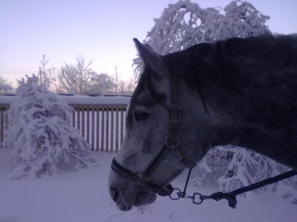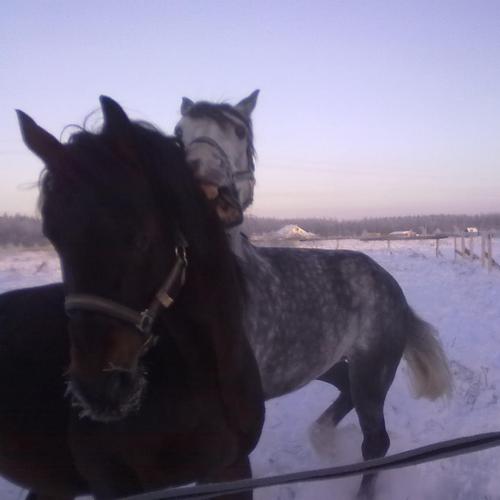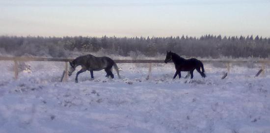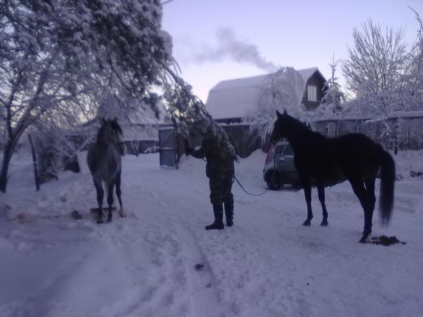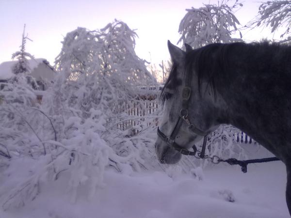 А в попонах мы гуляли первые дни, у нас же лошади не привыкшие гулять в морозы-то пришли. Вот первое время закрывали их. Сейчас только на снегопад сильный одеваем (иначе все ж сильно спина промокает). А если осадков нет, то без попон уже гуляют. По идее, признаков замерзания они особо не показывают. В конюшню (а там все ж теплее, а по нынешним -13 ощутимо теплее) не ломятся. Чапка ломится гулять и исследовать окрестности. А раз так, видимо не мерзнет все же.
