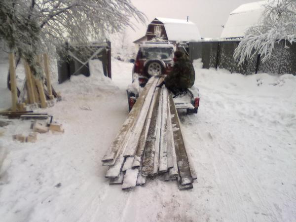 Везем стойматериалы :) Вот на этом прицепчике я обратно рассекала пузой кверху))))