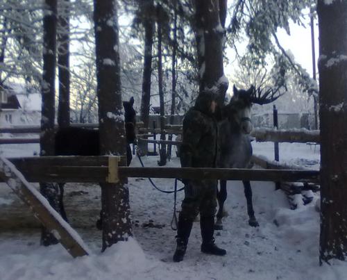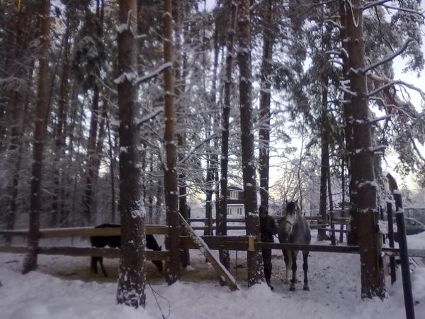 По дороге на плац))) Это у нас из конюшни между левад такая тропинка уходит, можно дойти до плаца лесом, а можно по дачной дорожке из ворот конюшни. Когда идем лесом, кони традиционно у выхода из леса встают и начинают... Если серьезно, то фигней страдать))) Первый раз Чапко остановился осмотреться. Ну я чего, смотри конечно. А теперь у него традиция. Вылезти. Встать. Покопать сугроб, погрызть деревья. Типа последняя минутка отдыха перед зверской работой зверушки :mrgreen: