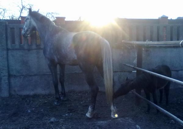 У нас - УРААААА!!!!!!!!!!!!!!!!! Галоп. Все, я себе это достижение записываю в какую-нить грамоту и на стену вешаю. Я честно говоря уже была уверена, что фиг что получится у меня у самой. Руки-то не из того места растут. Но - вдруг - бац и в субботу конь отрабатывает на корде просто на ура. Вот прямо как надо. То есть с рысью все отлично, галоп влево хорошо, вправо - крестит и прочим образом сбоит, но пытается идти, и пытается по команде... Думаю ну молодец, что крестит мне уже пофигу, все равно я переставить зад не смогу, так хоть по команде подниматься пробует, ну и отлично. На следующий день вылазим под седлом на корду. Рысь. Ну неплохо, хотя и остановочками иногда. Любое мое движение пытается истолковать как команду встать на месте :mrgreen: Галоп влево, все гуд... Дальше галоп вправо.... И моя лошадь бежит ГАЛОПОМ..... с нужной ноги. Без креста, безо всего, спокойно так бежит.... Ну я через полкруга от греха подальше хвалить и кормить и типа все, корда закончена. Но елки ж.... Первый раз за месяц. Как после кастрации слетел у нас галоп, так и не было - хотя галопом он ходил уже на четвертый день после операции... Мы бились, бились, я уже решила, что все, не видать мне галопа в ту сторону вообще еще нцать времени. Я ж пыталась хоть один темп нормальный получить. Нифига, ни разу. А тут вдруг взял и пошел