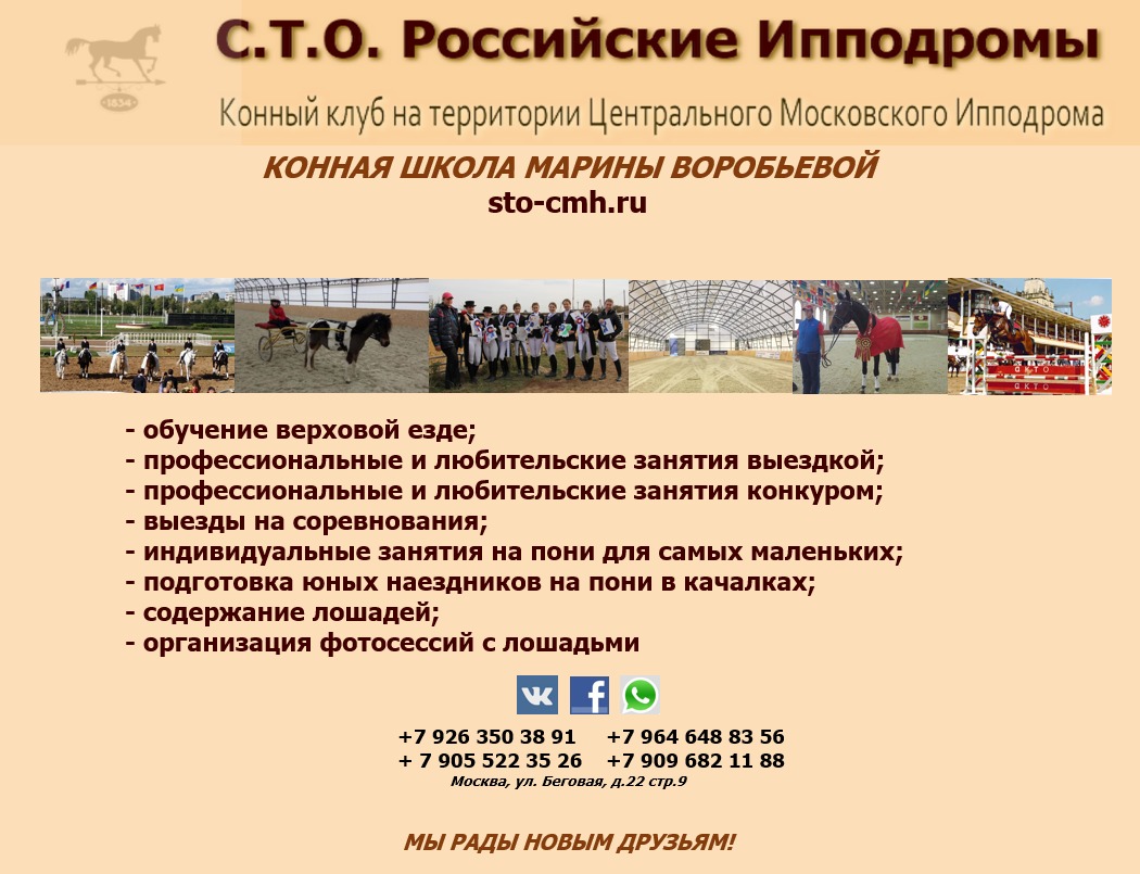 Приглашаем детей и взрослых на индивидуальные и групповые занятия. Центр Москвы, метро Белорусская, Динамо, Беговая рядом. Светлый крытый манеж с прекрасным грунтом. http://sto-cmh.ru/