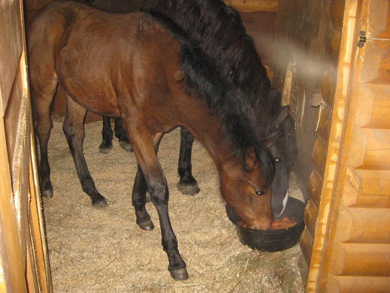 А в полях конь развеселился и отвесил мне козла на галопе,поймав очередной кустик.Вот такие вот дела.Нет, я конечно люблю активных лошадей, но все должно быть в меру.К чему нам такие полеты,к тому же на бестрензельной уздечке. Так же уже порядком поднадоело постоянное и не проходящее шараханье от кустиков\пакетиков и прочего инопланетного мусора. У меня даже есть подозрение, что с каждым разом становится все веселей. И поэтому я стала потихоньку снимать овес, тем более, что конь уже прилично отъелся.Сейчас кушает 2,5 гарца в день.