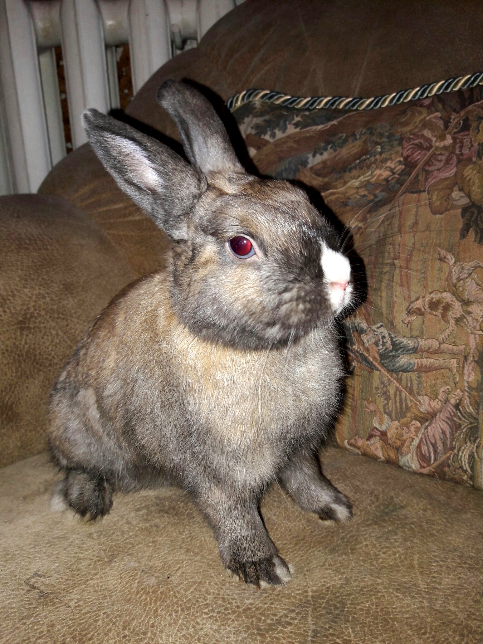Ищем руки вот такому красавцу. Мальчик с голубыми глазами (на фото вспышка все испортила). Добрый, не кусается. Кролю почти 2 года (не больше).