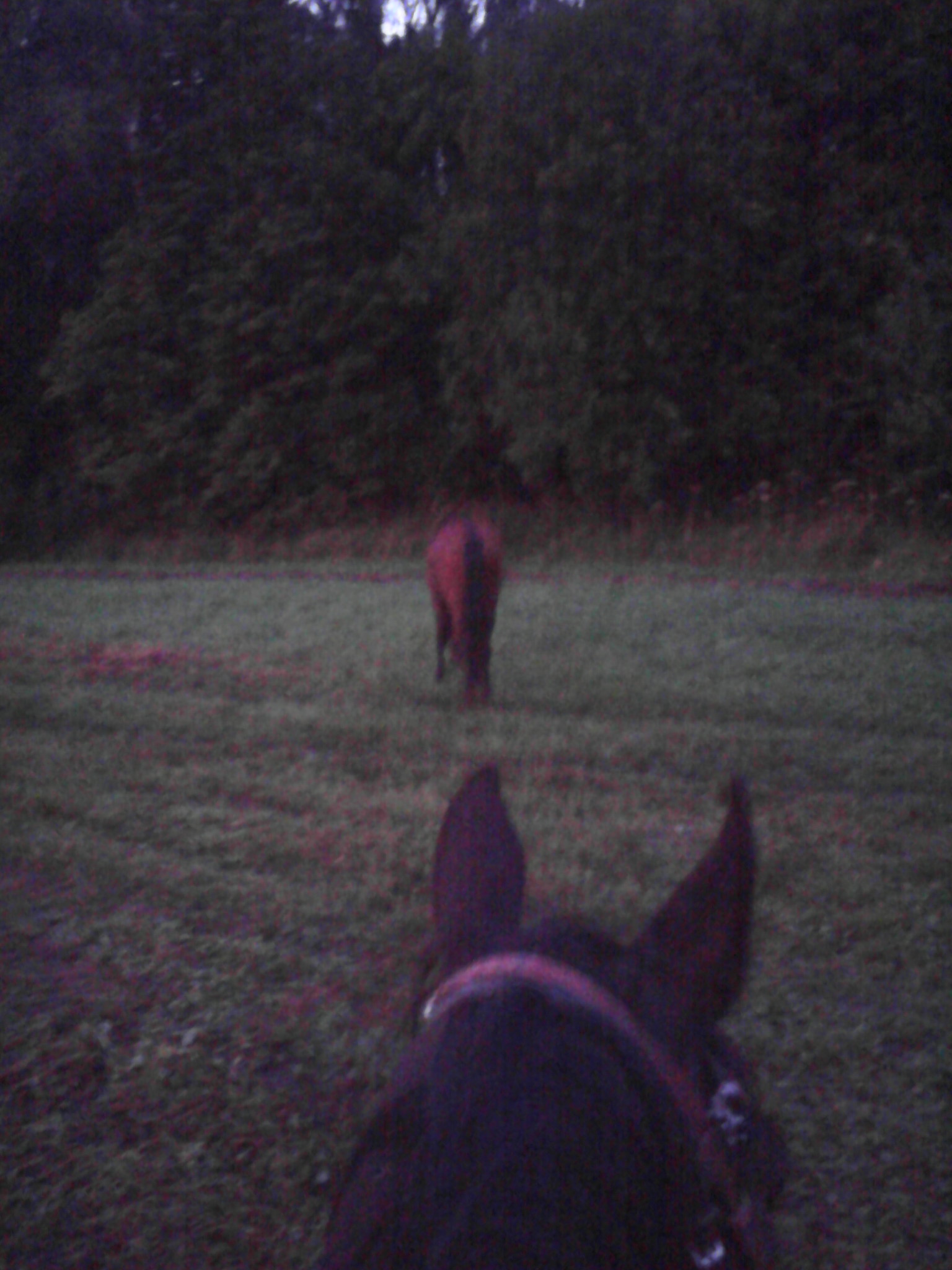 А теперь о Гаврюше. Что-то он у нас захандрил. Как будто в апатии. Ничего вокруг не замечает, сам по себе, не участвует в общих делах. Давно не брала работать. Хотя на выпасе отпускаю его свободным побегать и попастись там, где ему хочется. Вроде получает все, что лошади надо. Сено всегда в доступе, каша с мегабазой, лизунцы, вода тоже всегда, друзья опять же. Яблоки пошли свои, морковь тоже. Заметили, что плохо стал слышать. Ладно, когда на работу зовешь, может прикинуться, но когда на кашу всех зову!... И когда подходишь и он замечает, очень искреннее удивление у него и гогочет радостно! Это конечно аут при его зрении.... Так вот вчера мы с мужем решили, что надо его взять поработать так, как он больше всего любит. В поля под верхом и с кобылой с собой на свободе. Поехала на ближайшее поле, там скосили борщевик 2 раза и стало все видно, ровно и травка зеленая выросла. Поразмялись там рысь, легкий галопчик, пошагали. Глори носилась вокруг, валялась и потом принялась травку есть, пока мы вокруг нее шагали и тут у меня ушло стремя! Так одряхлело путлище, что рассыпался шов, соединяющий ремень с пряжкой и стремя в траву упало. Хорошо, что мы шагали и хорошо, что седло строевик, на него с земли сесть можно. Слезла, привязала (правое), прицепила кобылу и пришлось возвращаться домой раньше, чем хотелось бы. Да ну ладно, зато и Гаврилу не перегрузила с такой частотой работы-то! Ну а продолжение дня я описала выше!!!