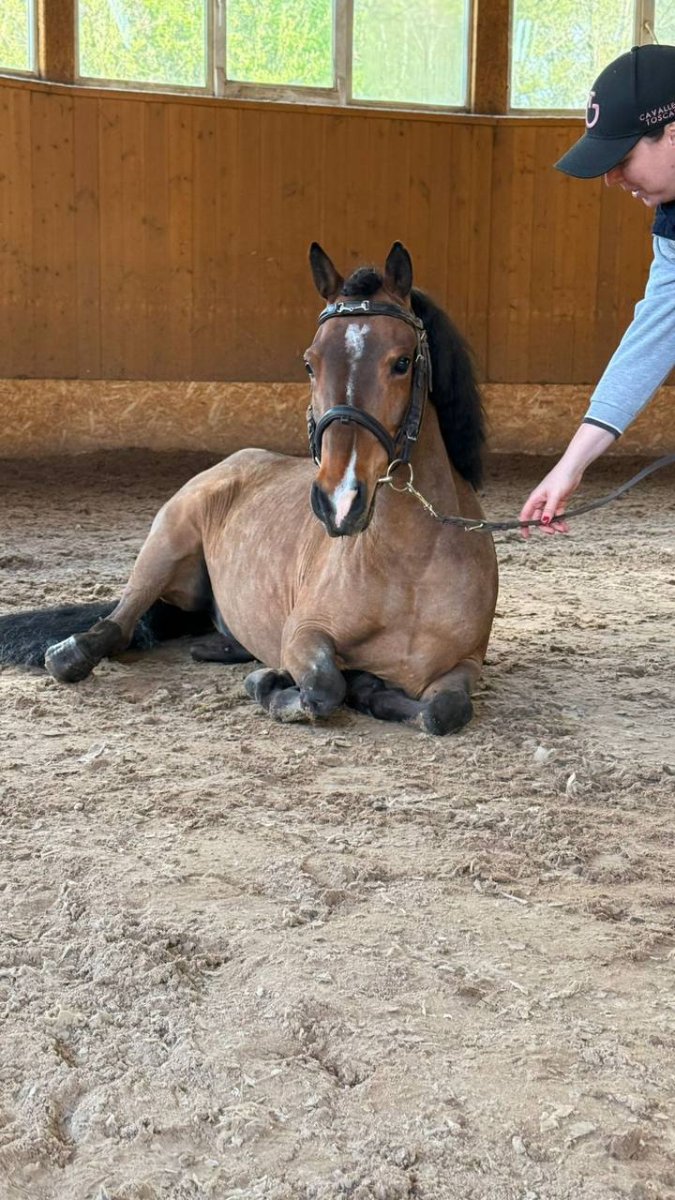 Умеет делать поклон, свечку, по команде даёт ногу, сидит, лежит и просто очаровывает своей красотой