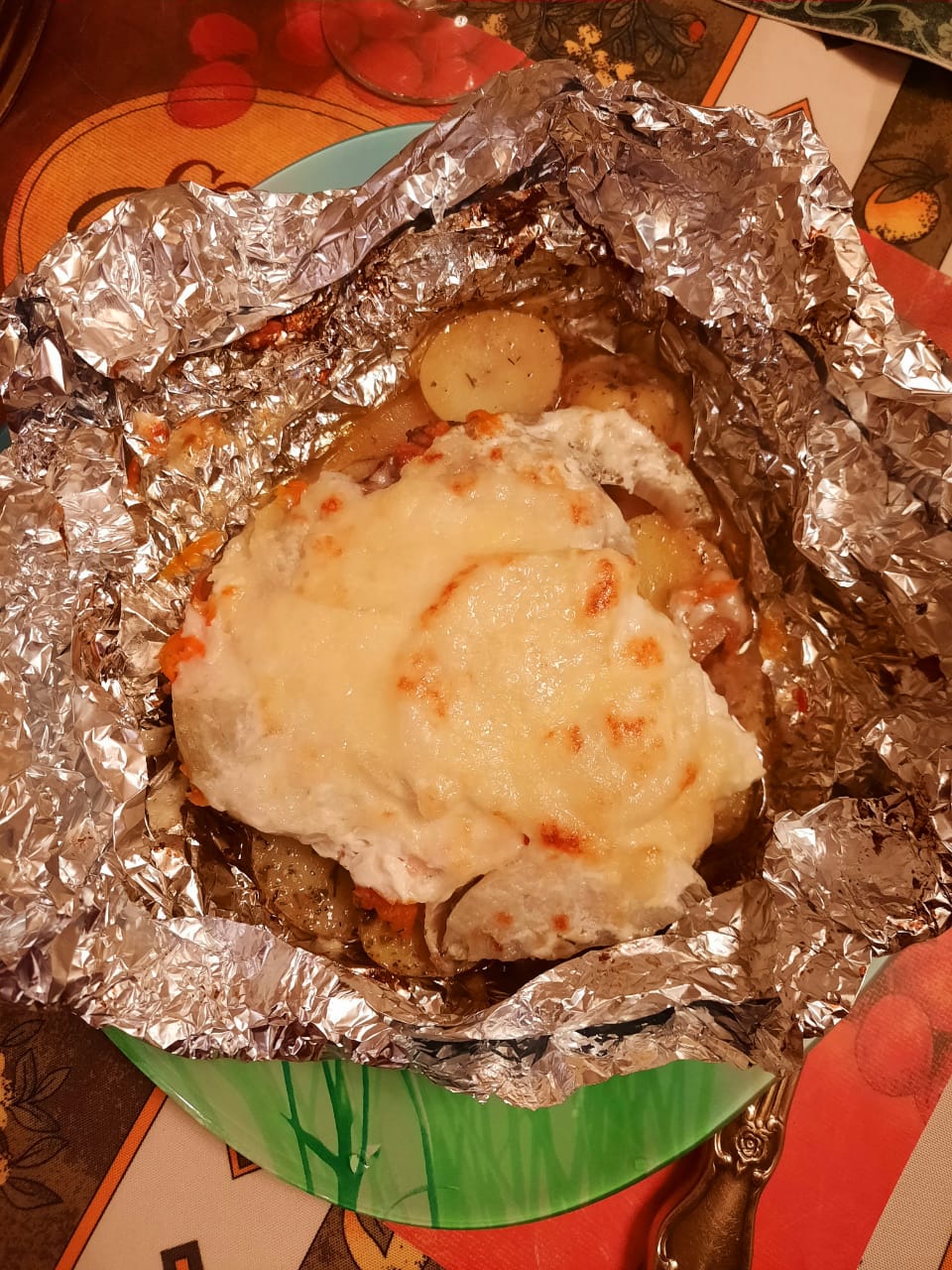 ? Класс, аж слюни потекли , куриное филе отлично подойдёт , а ещё , что бы не было брызг от молоточка ?. Спасибо ?Фото вдогонку с тарелки)) (Лучше на неё класть прямо в фольге, там вкусная подливочка внизу)