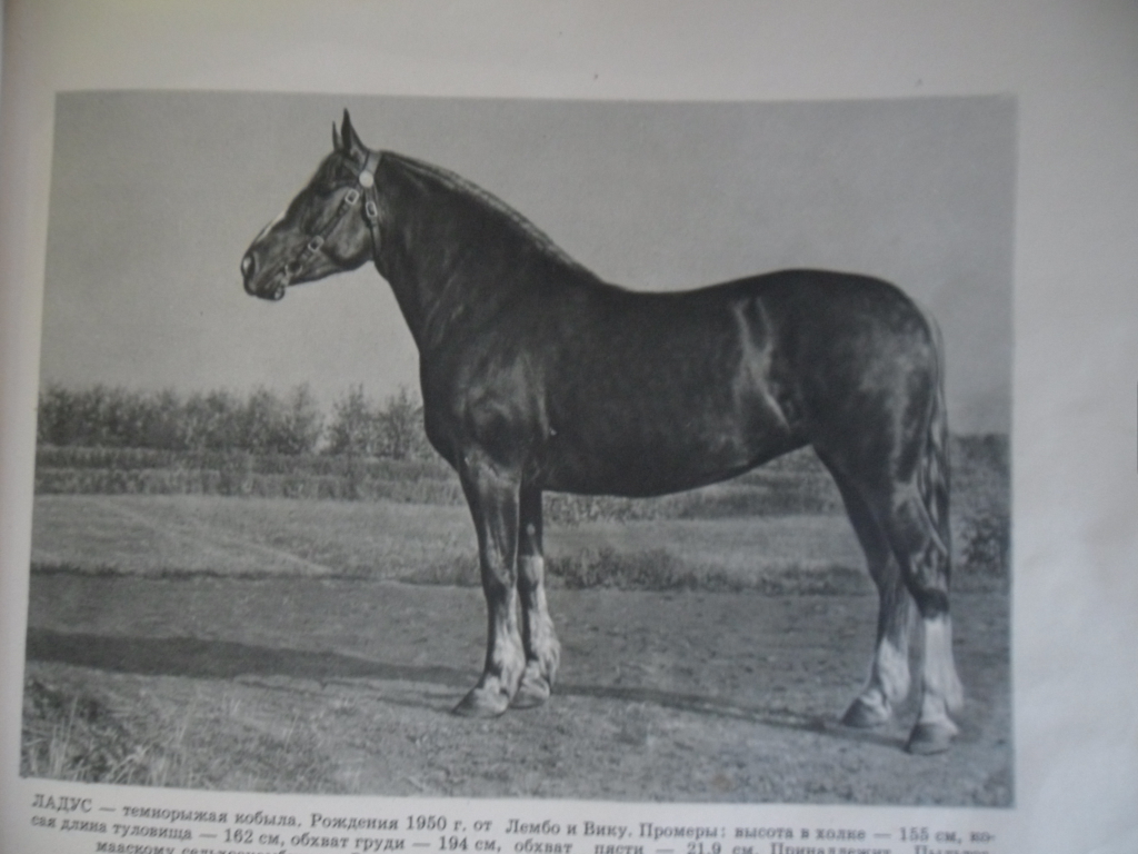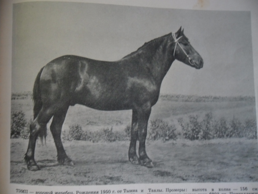 1 - торийский жеребец 1949 г.р. 158 см. в/х, 668 кг. живого веса, на испытании вывез груз 8299 кг. Чемпион ВСХВ 1954 г.