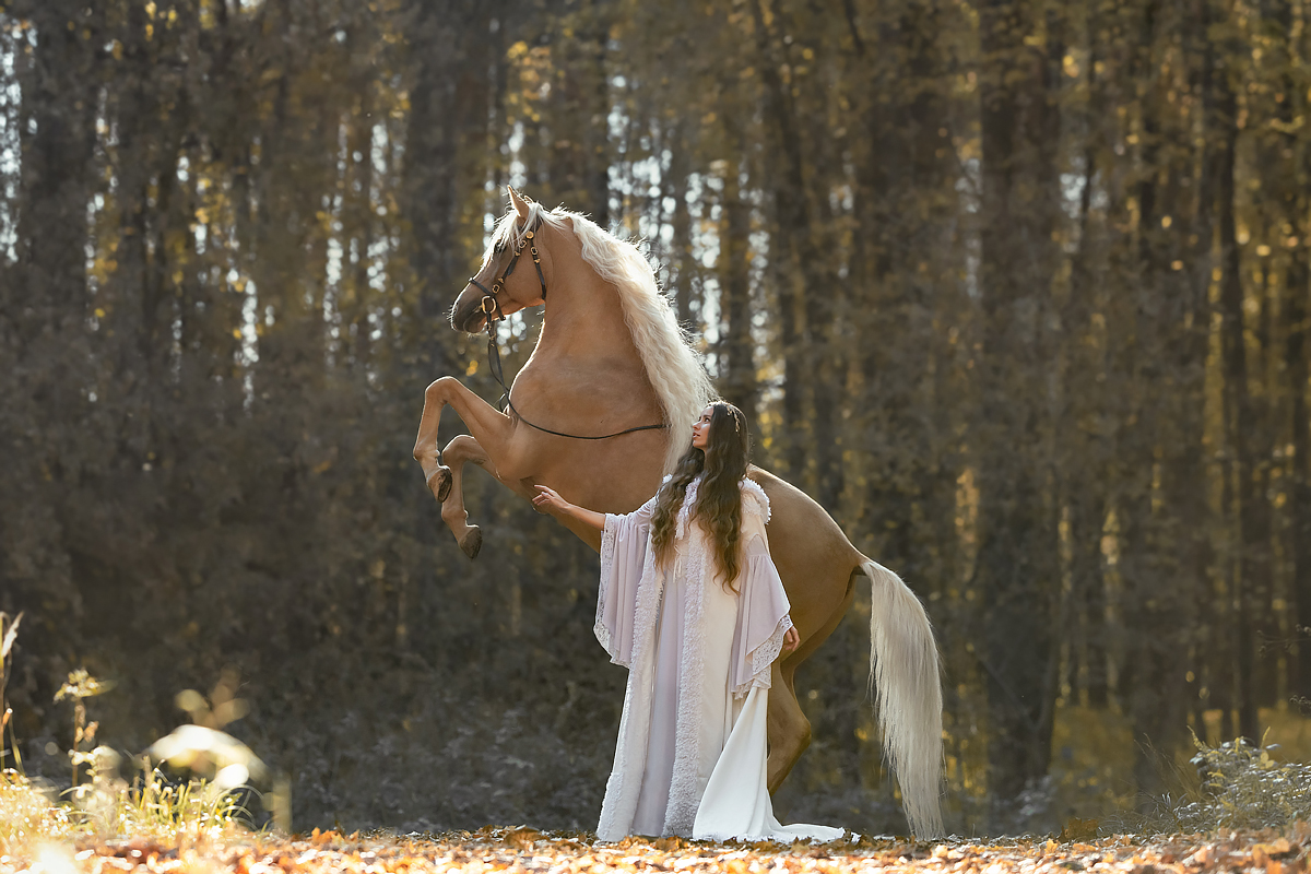 Предлагаем в аренду для фотосъемок необыкновенного коня, арабо-ахалтекинец - от каждой породы получил по наследству только лучшие данные, отличается необыкновенно складным и утонченным экстерьером, редкий окрас - соловая масть, и совешенно не характерная для этих пород густая роскошная белая грива. Обучен трюкам - поклон на одну и на 2 ноги, передний кранч, свечка. Прическа лошади для съемки обсуждается - на выбор плетение кос или распущенная грива (обговаривается заранее). Стоимость аренды за 1 час съемки - 5000 рублей. Съемка может проходить на берегу реки, в поле или в лесу, теплое время года прямо в воде. Находимся недалеко от города Щербинка (Новая Москва).