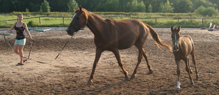 Мы вчера еле ноги передвигали...Галоп лошадка вапще не понимала с какой ноги делать, потом начала нервничать что не получается...ну понятное дело что я виновата...или она подзабыла....сколько уже с ней активно не занималась...- всю жеребость и 4 мес.жеребенку:)Прошу с правой ноги а - делает с левой и наоборот!:(Потом вроде как сообразили и на приятномзакончили работу!