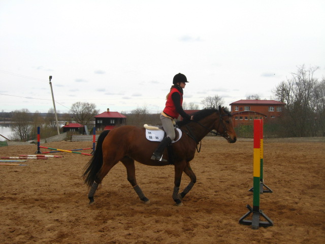 - Если лошадь в поводу или в сборе - она по осевой не гуляет.