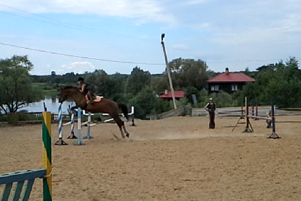 С маршрутом Юля справилась лучше, чем ожидалось. Основные проблемы возникли на ее "любимых" препятствиях: стенке, тройнике и калитке. Также вскрылась проблема недостаточной прямолинейности лошади в прямых и поворотах. (пользуюсь выездковым термином "прямолинейность", подразумевая под ним выпрямленность лошади на двух поводьях)