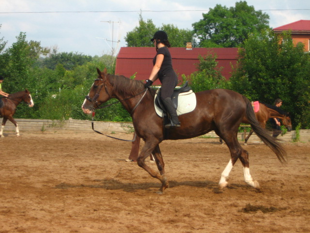 Галоп всегда начинаю на корде, и держу на ней до тех пор, пока человек не стабилизирует посадку
