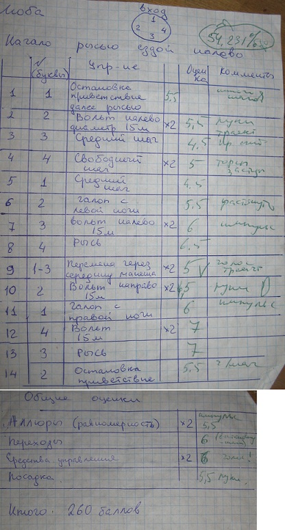 И Лера и Люба получили каждый свое задание. Уже были удивления по поводу того, как я просуживаю своих учеников, поэтому напомню еще раз. Помимо езды, всадник получает задание (ну, например, Люба. Ей дано было задание больше следить за точностью переходов относительно букв и за траекториями вольтов/перемен). Поэтому в первую очередь при выставлении оценки учитывался эти параметры, а уже потом остальные).