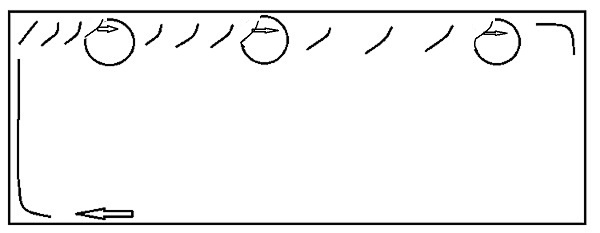 4 Одновременно с этим :lol: следим за состоянием аллюра, и вмешиваемся, как только лошадь начинает терять нужное состояние (опять же, поправили - и снова спокойно ведем лошадь по траектории)