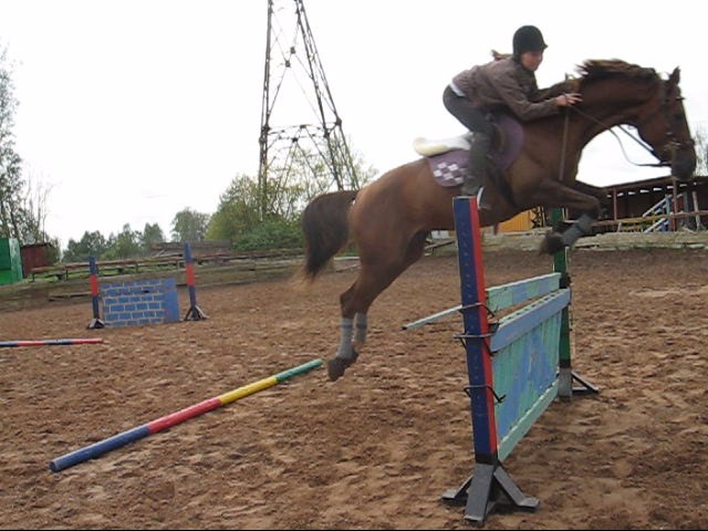 После этого попрыгали связочкой 2 препятствия (оба по диагонали). У меня не до конца открылся объектив, поэтому фотки получились забавные - как будто отфотошопленные :)