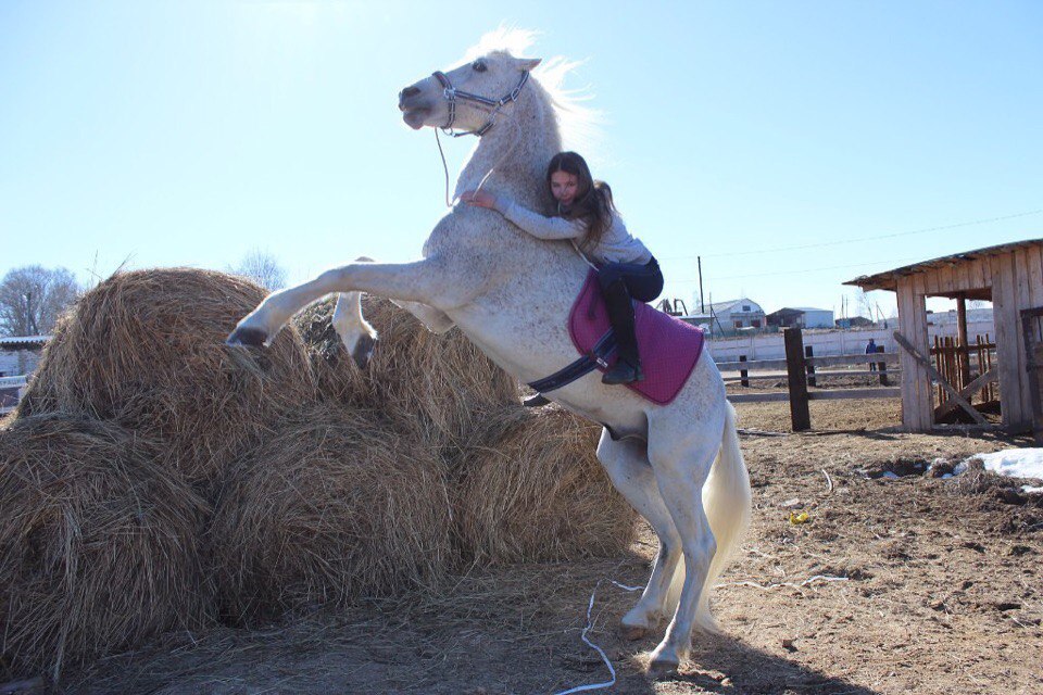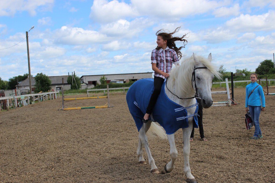 Всем привет расскажу вам как я вообще попала в конный спорт. У нас в классе учится девочка Соня и она занималась в КСК"Импульс"и я у неё спрашивала что да как там. Потом уговорила родителей записать меня туда. Они меня записали и первое занятие было с тренером Лилей на лошади по кличке Дрезден.после занятия я попросила записать меня ещё раз. И второе занятие было тоже с Линей и на лошади по кличке Рома меня учили ездить рысью, но я очень боялась и мы шагали почти все занятие. А третье занятие было тоже на Роме только уже с Маргаритой Сергеевной. А потом я узнала про КСК " Александровская Слобода" и мы поехали туда. Мы съездили на конюшню в Александров подошли к тренеру поговорили с ней и папа записал меня на одно занятие.Я пришла лошадь была готова это был Ланолин(на сколько я помню) и вот мой тренер был Ольга Евгеньевна и она меня просила делать разные движения на шагу потом мы поездили рысью и я перестала так боятся рыси после этого занятия у меня родители спрашивают " понравилось?Будешь ещё заниматься?" что ответила я " Мне понравилось конечно буду" потом меня записали и я занималась два раза в неделю это вторник и четверг. В конюшне в Александрове меня научили чистить и седлать лошадь на первом занятии потом я уже сама все делала. Я училась ездить на Ланолине и несколько раз ездила на Павелики и ещё на Агисе потом меня в один день неожиданно отпустили и я на