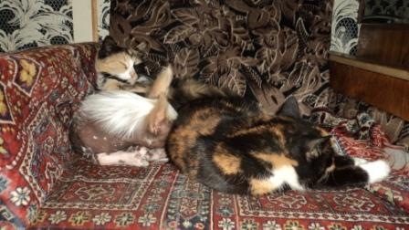 Они очень дружно живут с моей голой девчонкой-спят все вместе,а Режина даже Весту моет.