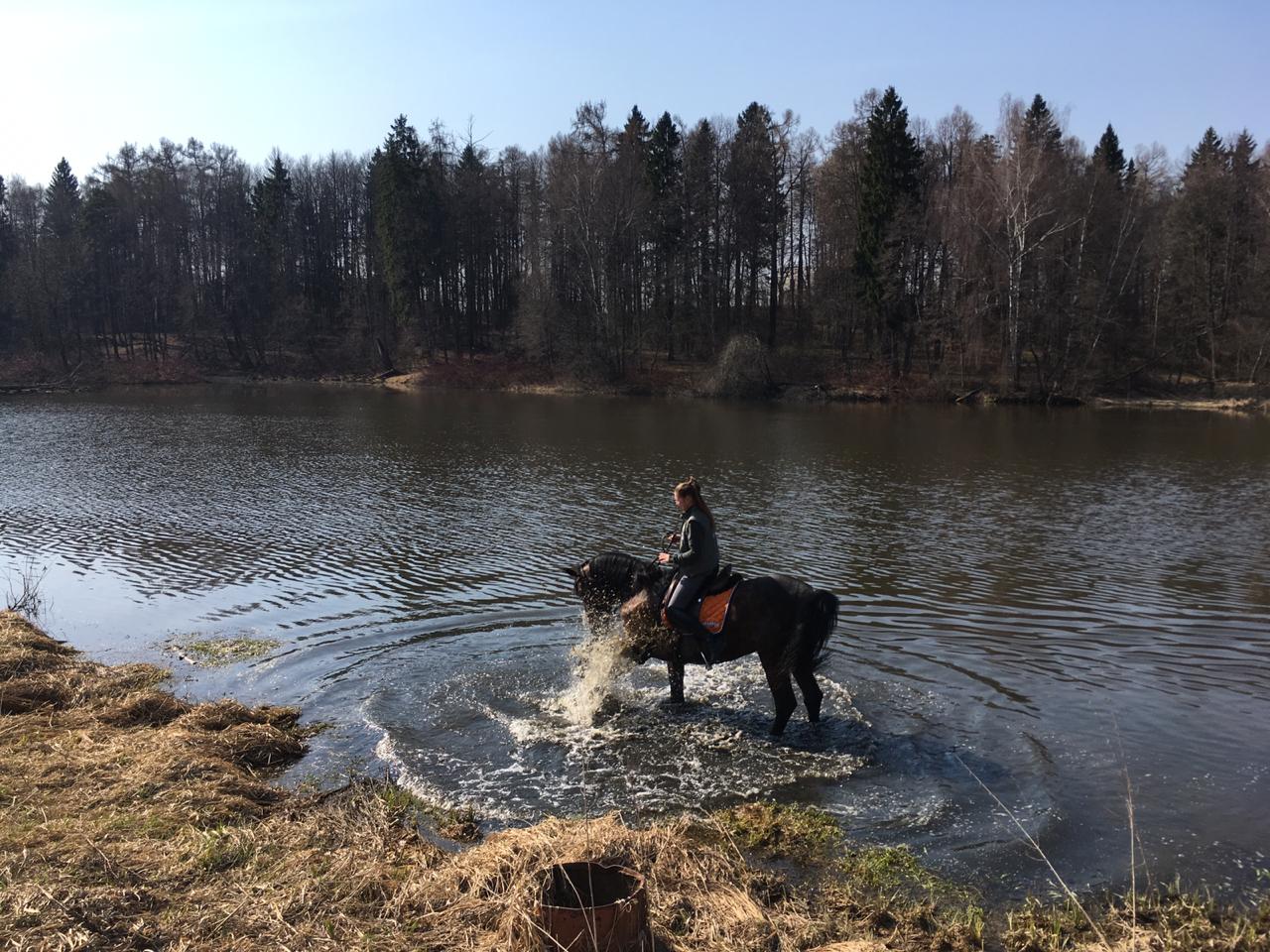Дело в том, что на хлыст он жутко истерил, нервничал, начинал тащить. Света потихоньку сначала брала хлыст в руки, потом помахивала им на тренировках, потом уже откровенно подгоняла рысь. Держала в руках на галоп. Потихоньку давала мне в руки на рыси, он сразу начинал истерику. Света брала повод, подправляла. И вот в итоге сегодня вся рысевая и шаговая часть с хлыстом. На хлыст он начал истерику опять, но мы быстро привели его в чувство. И шагал он отлично, пару раз дернулся, когда я случайно хлыстом коснулась, но быстро вернулся в шаг.