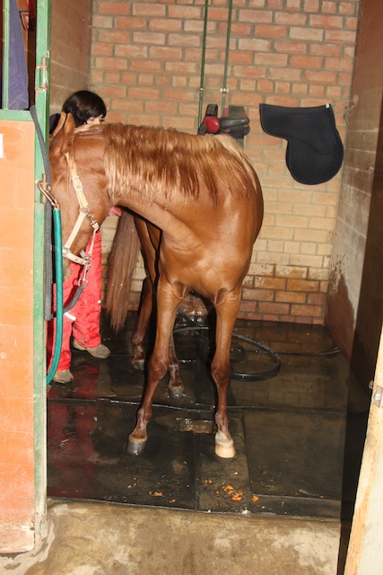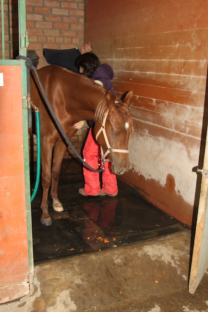 Постоянные читатели моего дневника и соседи по конюшне помнят, что долгое время самой нерешимой задачей для нас с Варей оставался вход в мойку (она у нас узкая, со страшными резиновыми матами и со скользким пандусом на входе). Все эти прилагательные в скобках я привожу, чтобы акцентировать внимание на том, что могло вызывать у Вари страх. Постепенно, буквально шаг за шагом мойка была освоена. Процесс занял несколько месяцев! В итоге летом я даже мыла там Варю полностью, а в начале октября мы с Юльком записали ролик о том, что Варя даже носом в тупике вела себя расслабленно. Вот этот ролик, если кому интересно http://www.youtube.com/embed/awWuabpPg4w