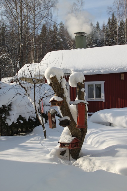 Мне очень нравится, что финны заботятся о лесных птицах - почти в каждом дворе висят кормушки для птиц, а в каждом большом супермаркете можно купить не только кормушки, но и специальные шарики и колбаски, состоящие из смеси зерна и жира - лакомство для синичек!