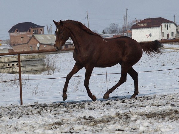 Итак, Кэмбридж, 3-х летний буденновский жеребец, внук Эргача, темно-рыжий, с проточиной и ростом в холке 167 см, стал нашим!
