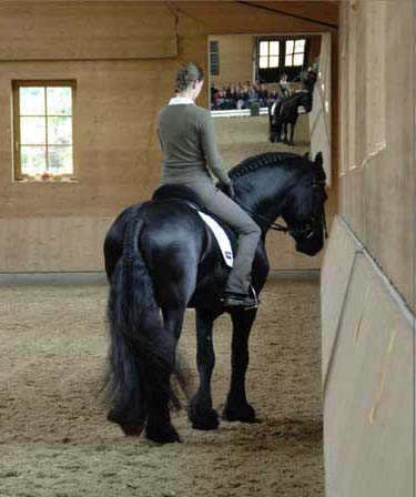 Да, сейчас я вывожу его на прямую еще и тогда, когда он сильно начинает валиться плечом на вольту . Хочу попросить на следующем вибинаре у Марайки пару советов на счет валящегося плеча. У Вари не было такой сильной проблемы с этим (хотя может быть за счет того, что до того, как я начала заниматься выпрямлением, я просто занималась дисциплиной и она хорошо выучила принцип уступок :roll