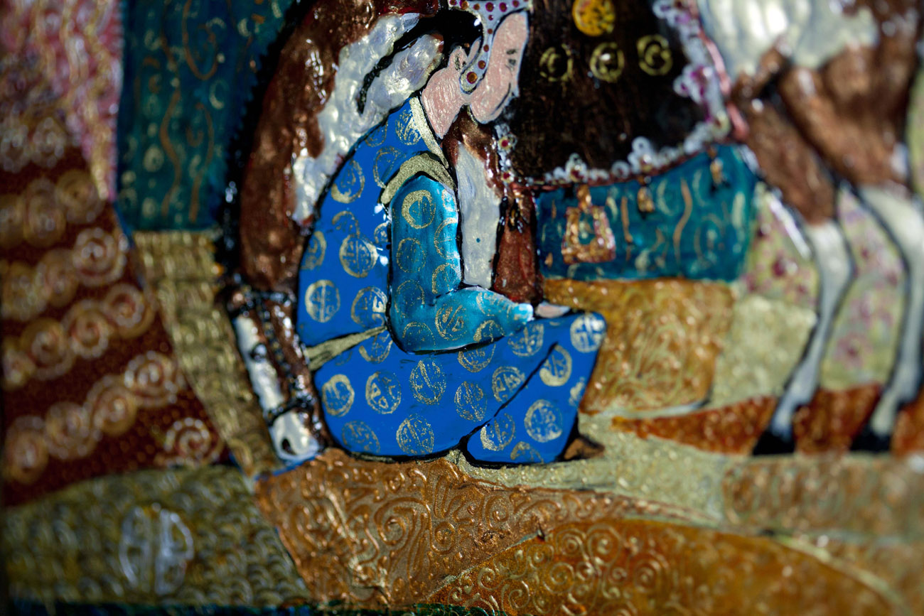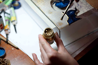 Ну т.к. объектив на ручном фокусе только и Ирку я снимала утром при свете дня и на трезвую голову, то меня снимали ночью почти в темноте. В итоге я получилась совсем не в фокусе, плюс из-за темноты некоторое зерно пошло. Перевела в ч/б, усилила зерно, сделала ещё пару слоёв со смещением , оставив чёткими, если так можно выразиться, только глаза и потом наложила фото при желтоватом свете фактуры металла. Вот так и получилось