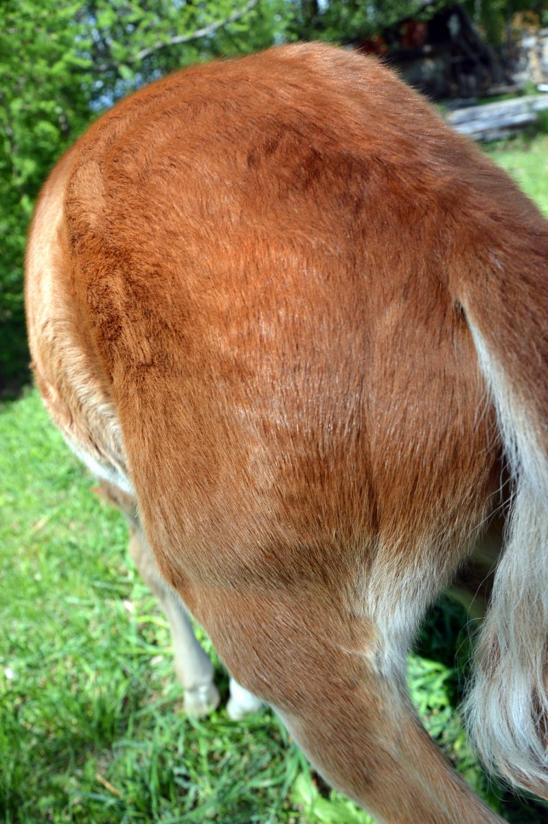 Как только начал более-менее держаться на ногах - перешли на сырое молоко от соседской коровы. Молоко чрезвычайно густое и жирное. Получив банку свежайшего парного молока, ставлю его сразу в холодильник (он настроен у меня на сильный холод). Через несколько часов сливаю в отдельную банку густые жёлтые сливки, чтобы несколько уменьшить жирность. Молоко, оставшееся в банке, перебалтываю перед каждым кормлением. Сливки вначале сливала почти полностью, теперь сливаю только часть - постепенно увеличиваю содержание молочного жира в смеси для жеребёнка.