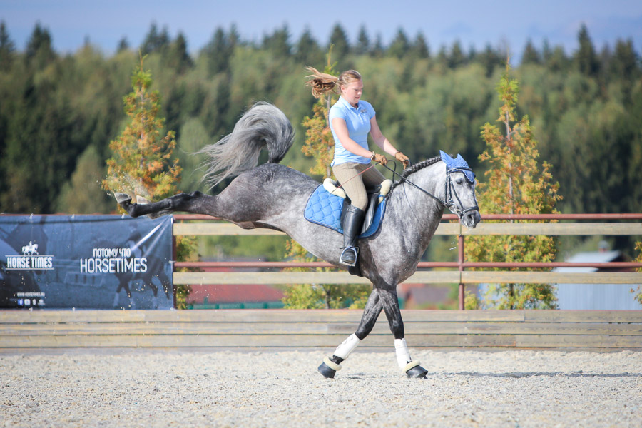 3) В продолжение предыдущего пункта. Если поднимается в галоп- не жать, дать вернуть контакт и потом переводить в рысь. То есть можно дать чуть проскакать, тем более, что в данном конкретном случае у нас была молодая достаточно лошадь.