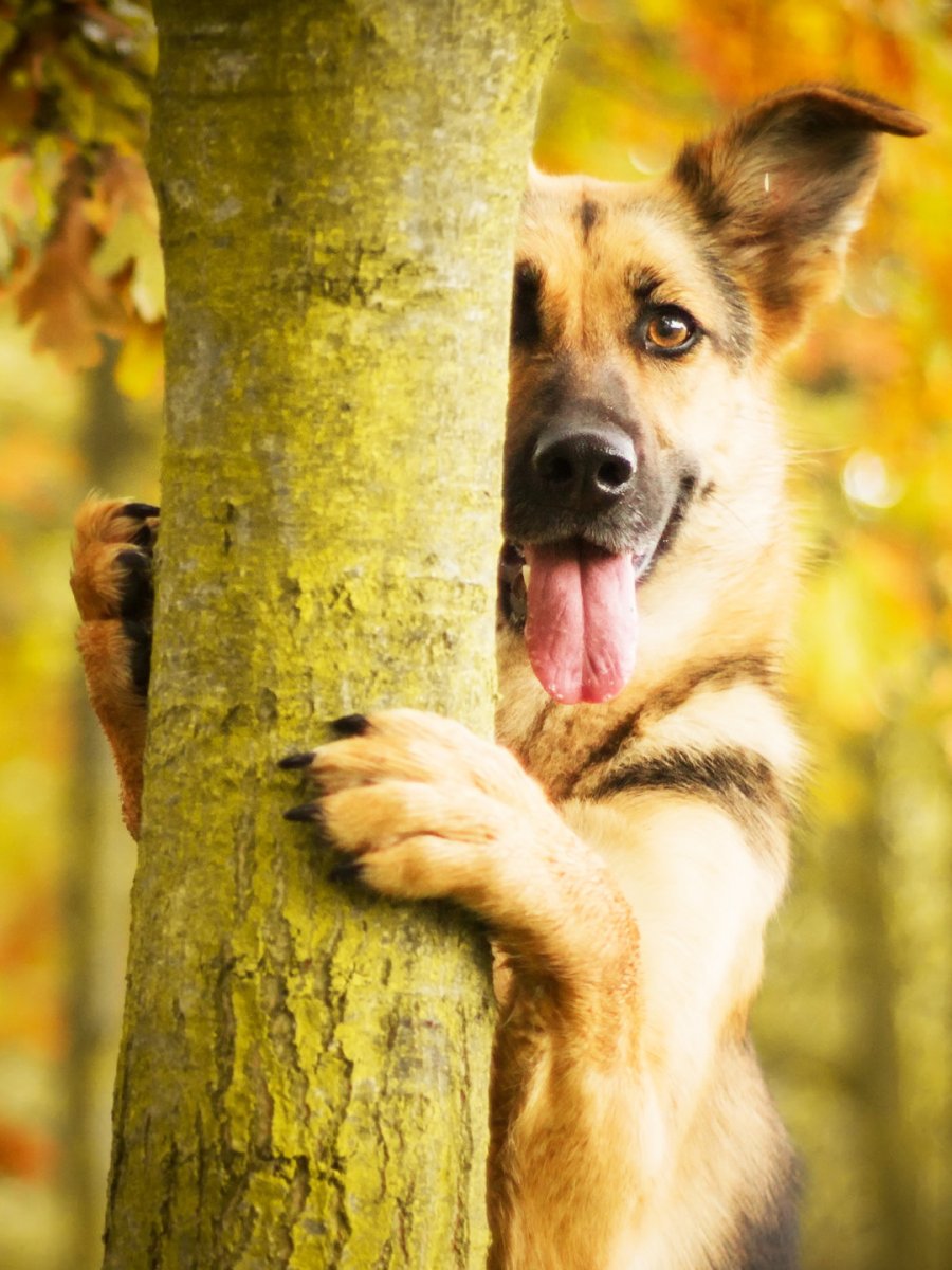 На деревья она только запрыгивает. Это не малина и не бордер. Ей не под силу по деревьям лазать.