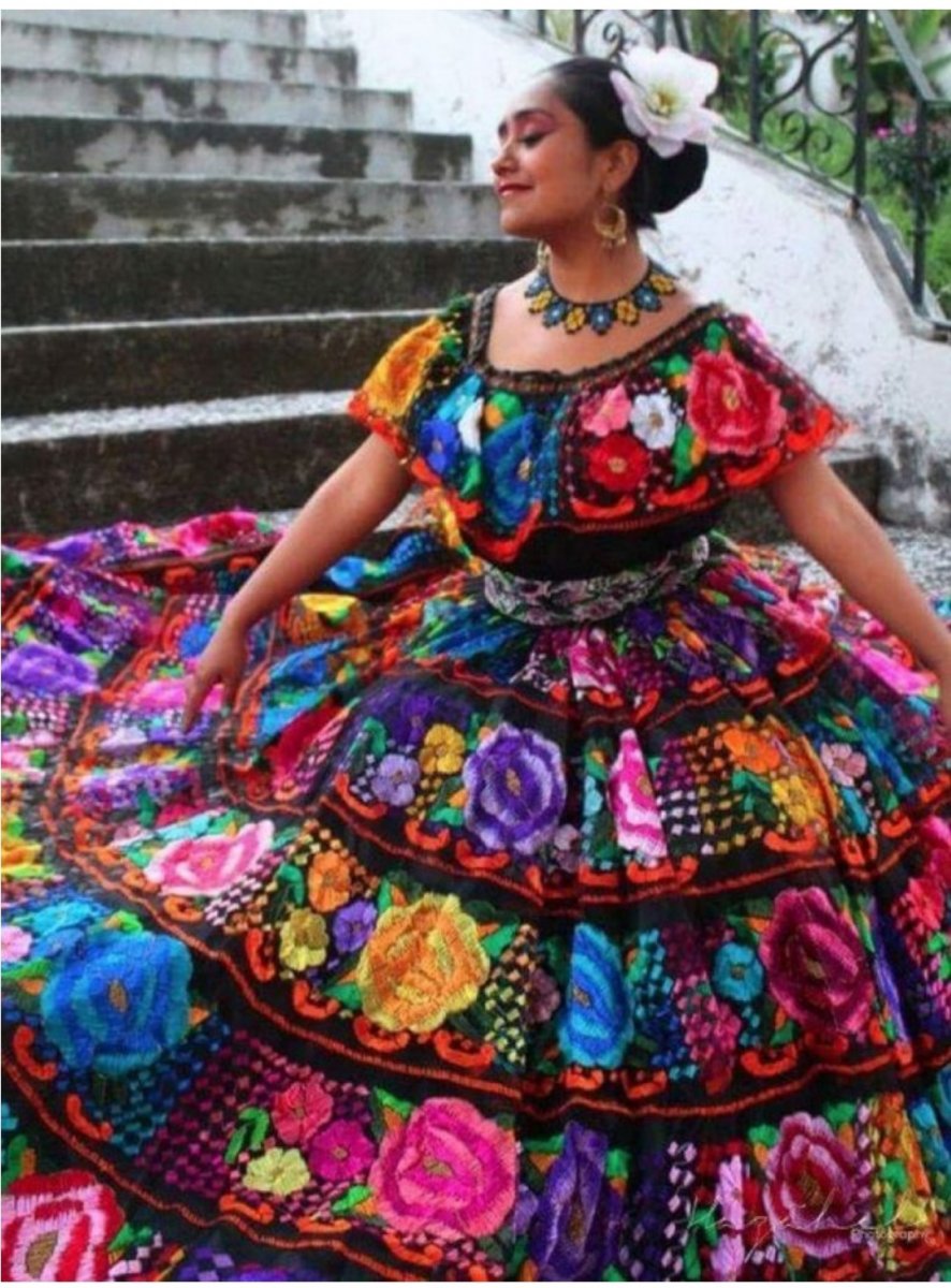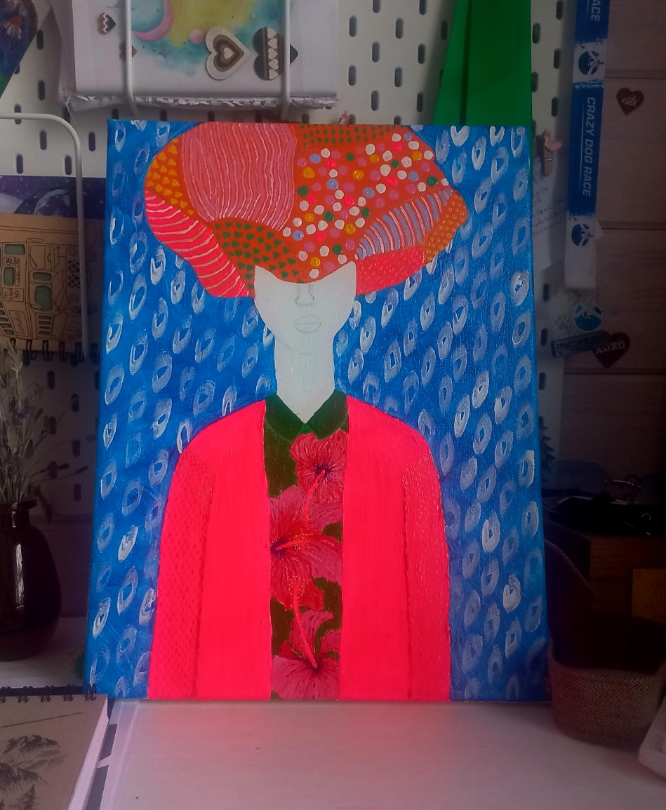 Хотелось чего-то яркого, начала делать тетеньку, поняла, что тётенька кубинка и начала листать фотки кубинок в национальных платьях.Выглядит похоже на Фриду Кало почему то