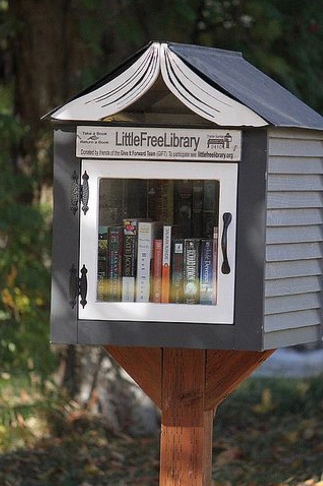 Переехав в дом я поняла, что очень хочу мини библиотеку. Аккуратный домик, повторяющий цвета моего дома. На коричневых "куриных лапках" сине-белый домик.