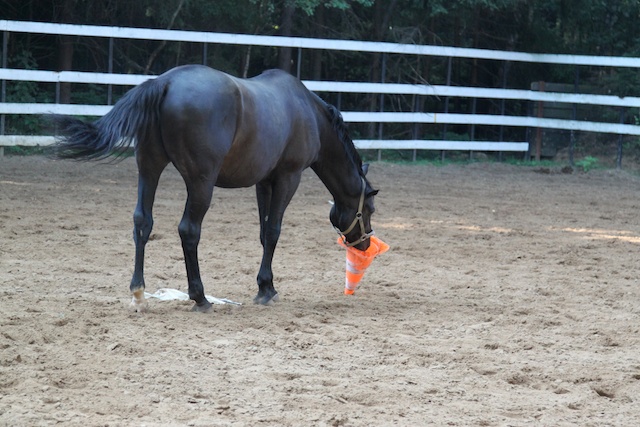 Поездила сегодня на Брюсике с хлыстиком (обычно без него).. Эмоционально вышло. Он уж слишком впечатлительный конь. :| Когда я села на Эмира с хлыстиком (2 года назад), тот скакал как ненормальный месяц, наверно, к 3му месяцу его вообще этот хлыстик не волновал. Брюс 2ой год его боится :| И не известно еще, что страшнее, испанские ручки или спортсмены выездюки, готовящие коня, никак к Олимпиаде в 4 года. Он пытался угадать, что же я попрошу в след момент, и заранее предлагал все, что в голову приходило, когда оказывалось, что не угадывал, то начинал прыгать на месте и изображать оленя, зажимая спину. Поставила я ему конусы, и пришлось сосредотачиваться на них + постоянные переходы в шаг и остановки. В конце ничего так, даже хлыстом его трогала по ноге :roll:
