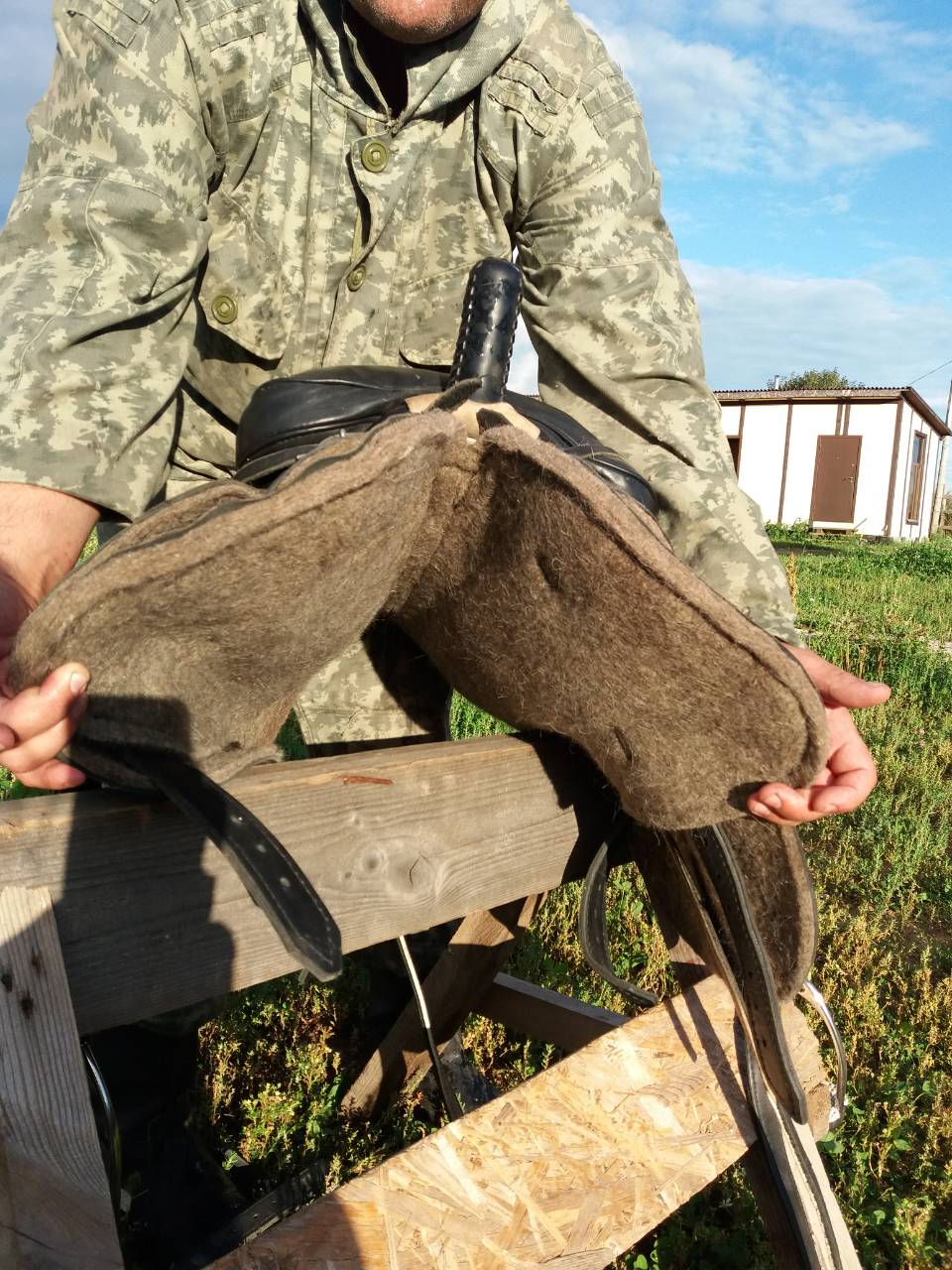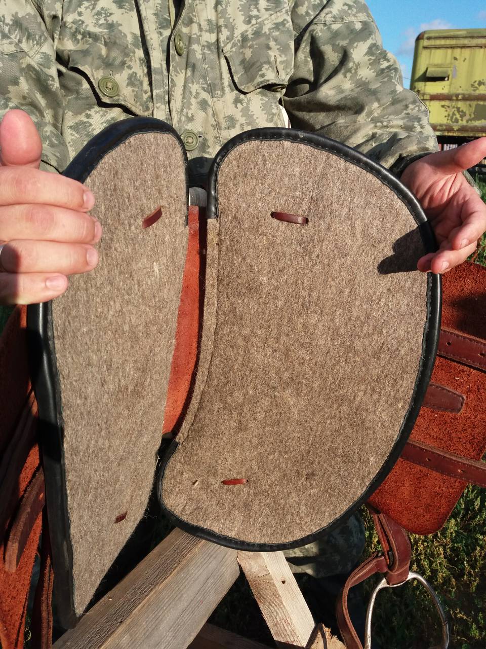 Продаются казачьи седла в сборе (потник, стремена, подпруги, скошевка). Черное и коричневое. На среднюю холку и не сильно широкую спину.