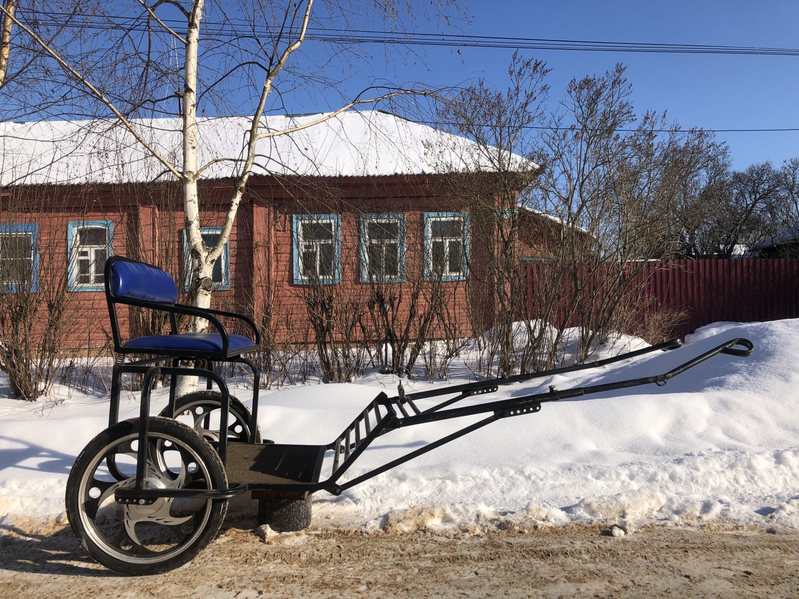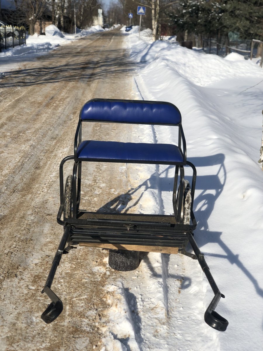 Двуколка для пони от 100 до 120 см в холке. Регулировка оглобель по высоте, регулировка колес, два комплекта оглобель в комплекте.
