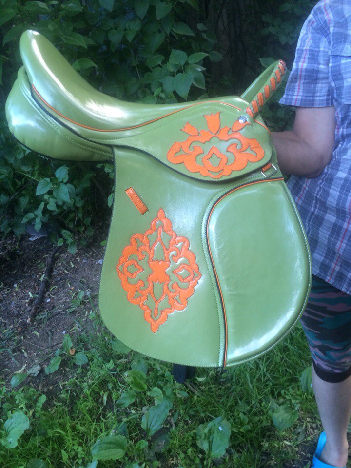 4 Сёдла на лошадь белое и салатовое. Новые. Размер 17. 17т р