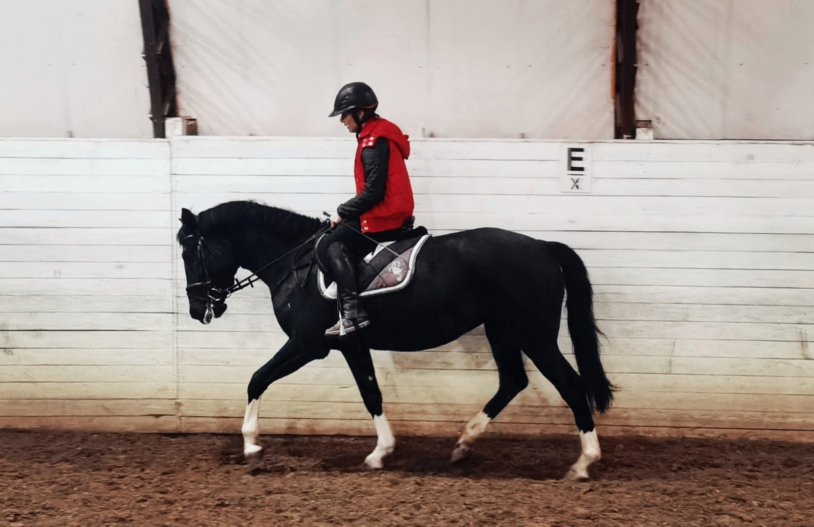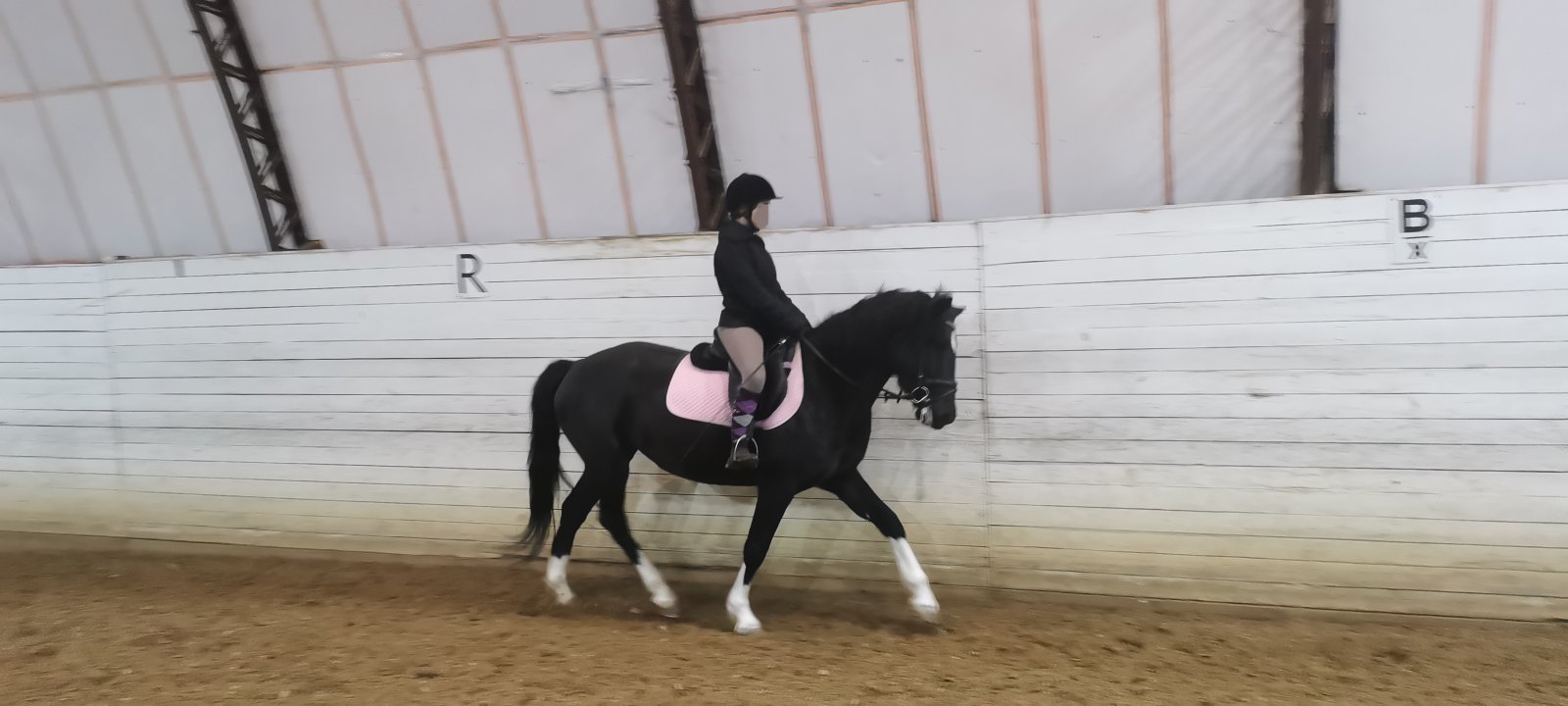 Нарядная вороная кобыла, в основном работается в направлении выездка, в апреле-мае планируем напрыгивать (пока работает по жердям). Есть опыт работы с арендаторами (лёгкий взрослый и подросток 13 лет). Удобная рысь. Контактная, добрая, под верхом ничего плохого не делает, (максимум, может дёрнуться на резкий звук или движение).