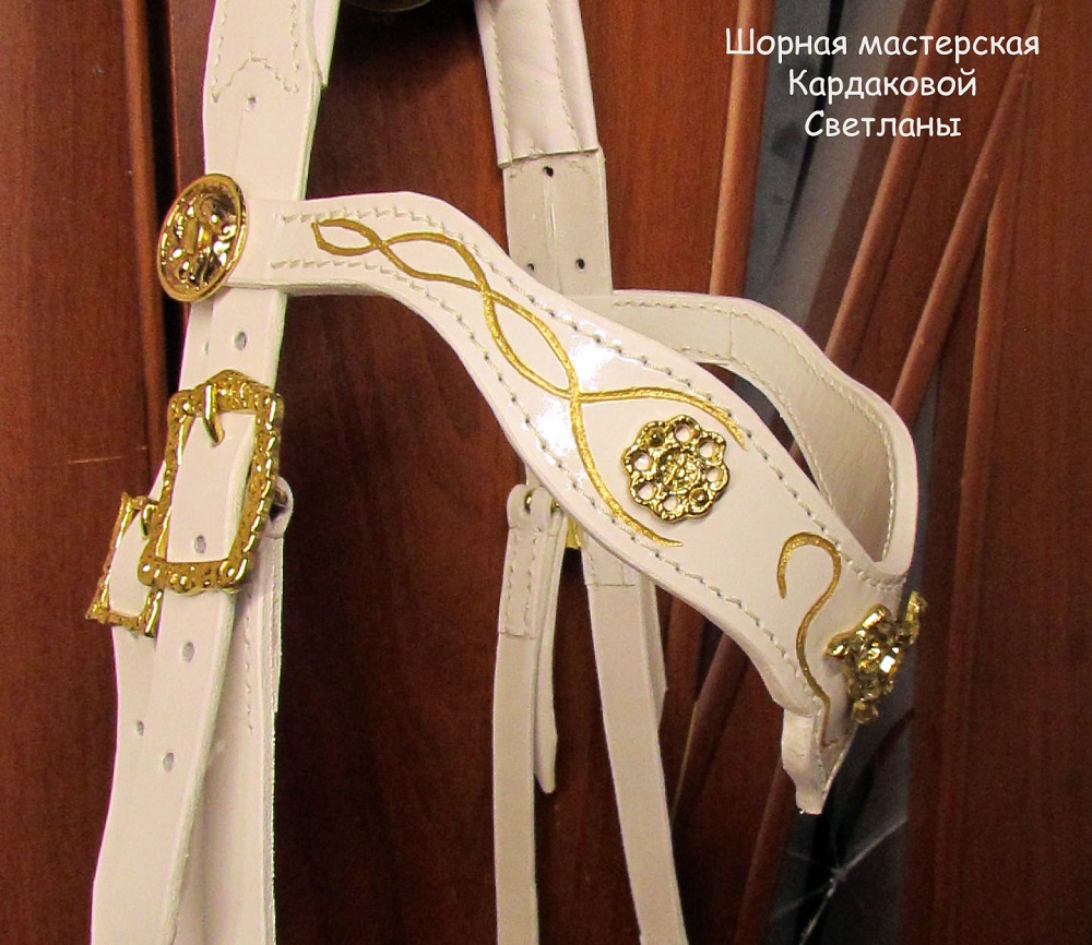 В наличии эксклюзивная барочная хакамора из белой кожи. С золотой Испанской фурнитурой. Рычаги с наносным отстегиваются и возможно использовать как уздечку. В комплекте с поводом. Цена всего комплекта всего 12 500 рублей.