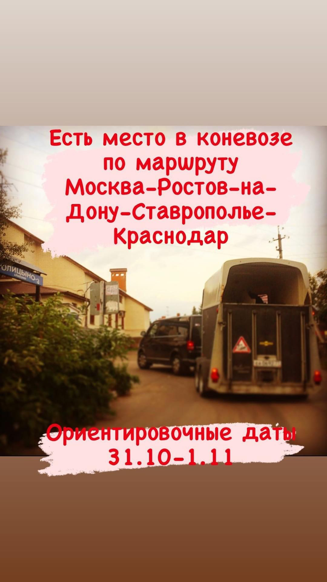 Есть место в коневозе, следующему по маршруту Москва-Ростов-на-Дону- Ставропольский край-Краснодарский край-Москва.