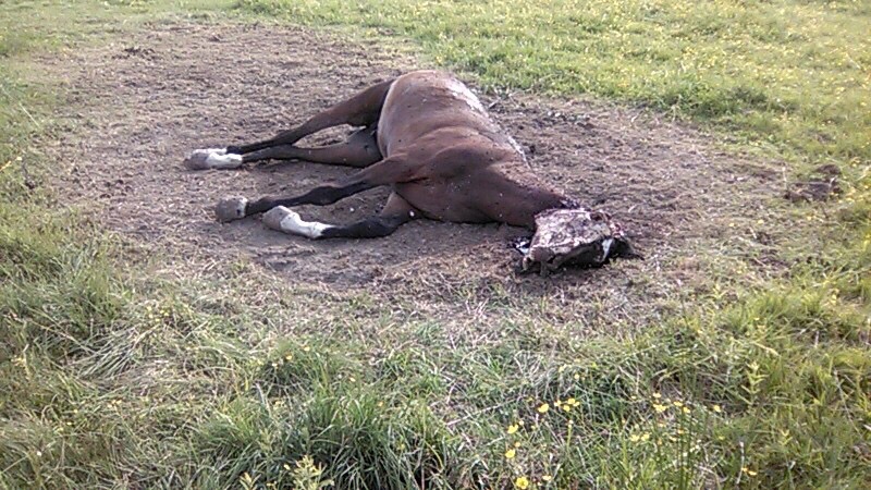 Лошадиная расчлененка валяется на территории всего конного хозяйства в деревне Половцево (5 км от Нелидово). Не менее десяти трупов разной степени разложения. И живые лошади в денниках.